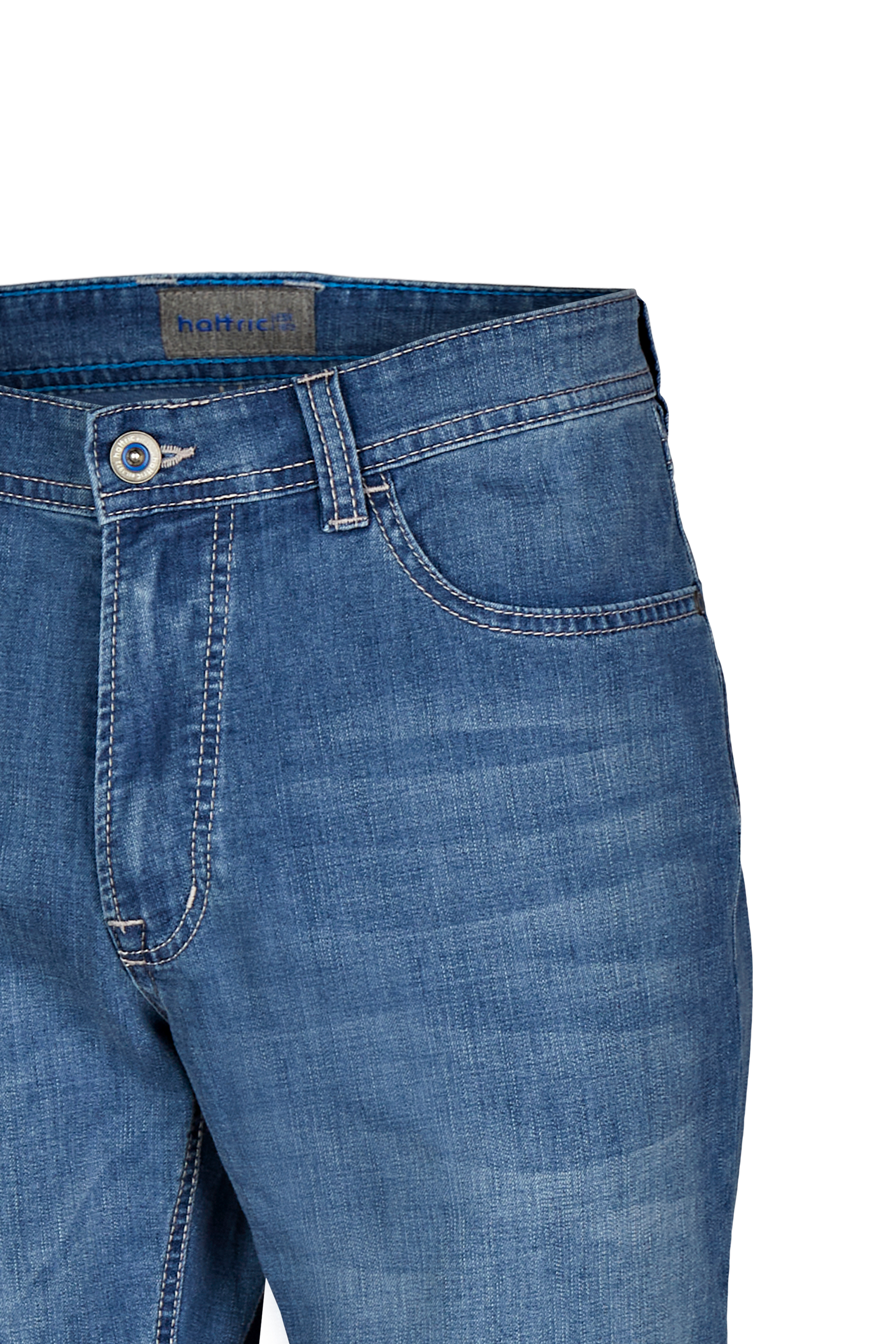 Летние мужские джинсы Hunter от немецкой марки Hattric (Хаттрик) идеально подходят для теплых весенних и летних дней. Ультра-тонкая джинсовая ткань обеспечивает идеальный комфорт. Классический цвет с деликатными потертостями и модель 5-карманов создают свежий повседневный образ.