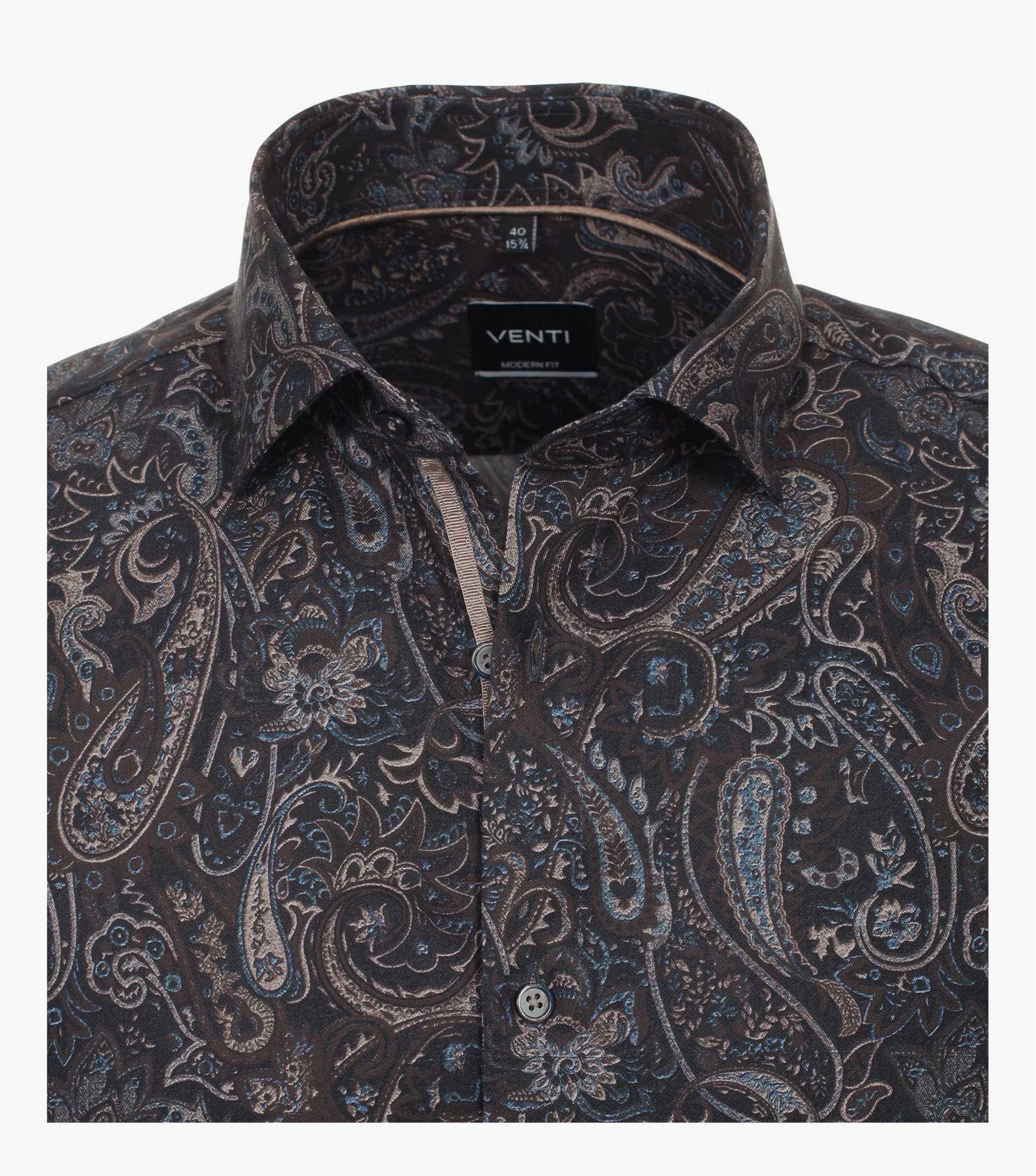 Сорочка с принтом мужская modern fit от немецкого бренда Venti (Венти) с длинным рукавом. Эта повседневная приталенная рубашка имеет удобную посадку и чрезвычайно удобна в ношении благодаря качеству чистого хлопка.
