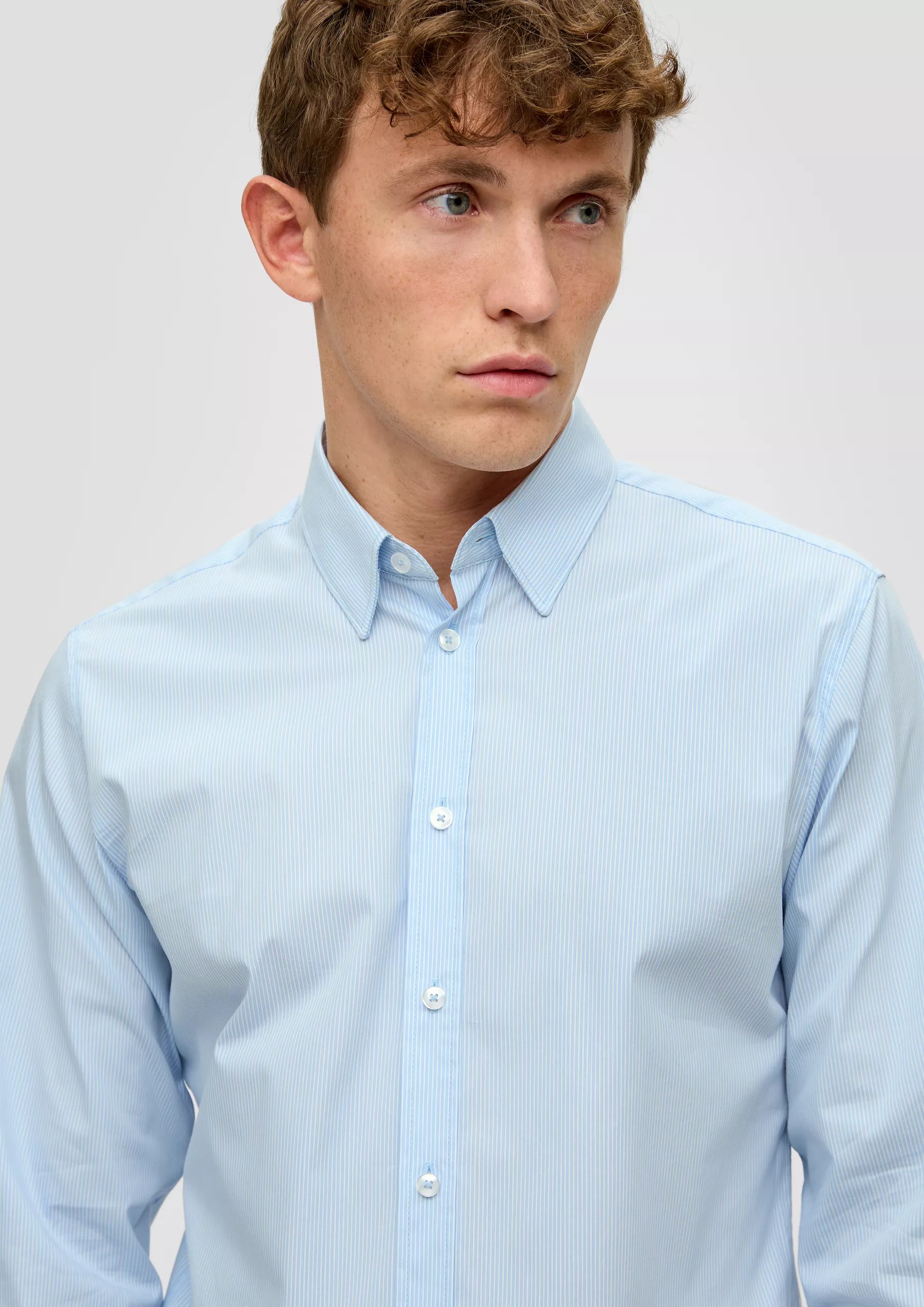 Мужская бизнес-сорочка немецкого бренда S.Oliver (С.Оливер). Мужские рубашки для бизнеса включают в себя высококачественные, классические, современные модели для мужчин. Основа делового мужского стиля-рубашка и брюки. Такой образ добавляет уверенности и статусности. Умение правильно собирать деловой наряд- признак хорошего вкуса. Стиль считается универсальным, он подойдет для большинства ситуаций: бизнес-встреча в кафе вечернее мероприятие.