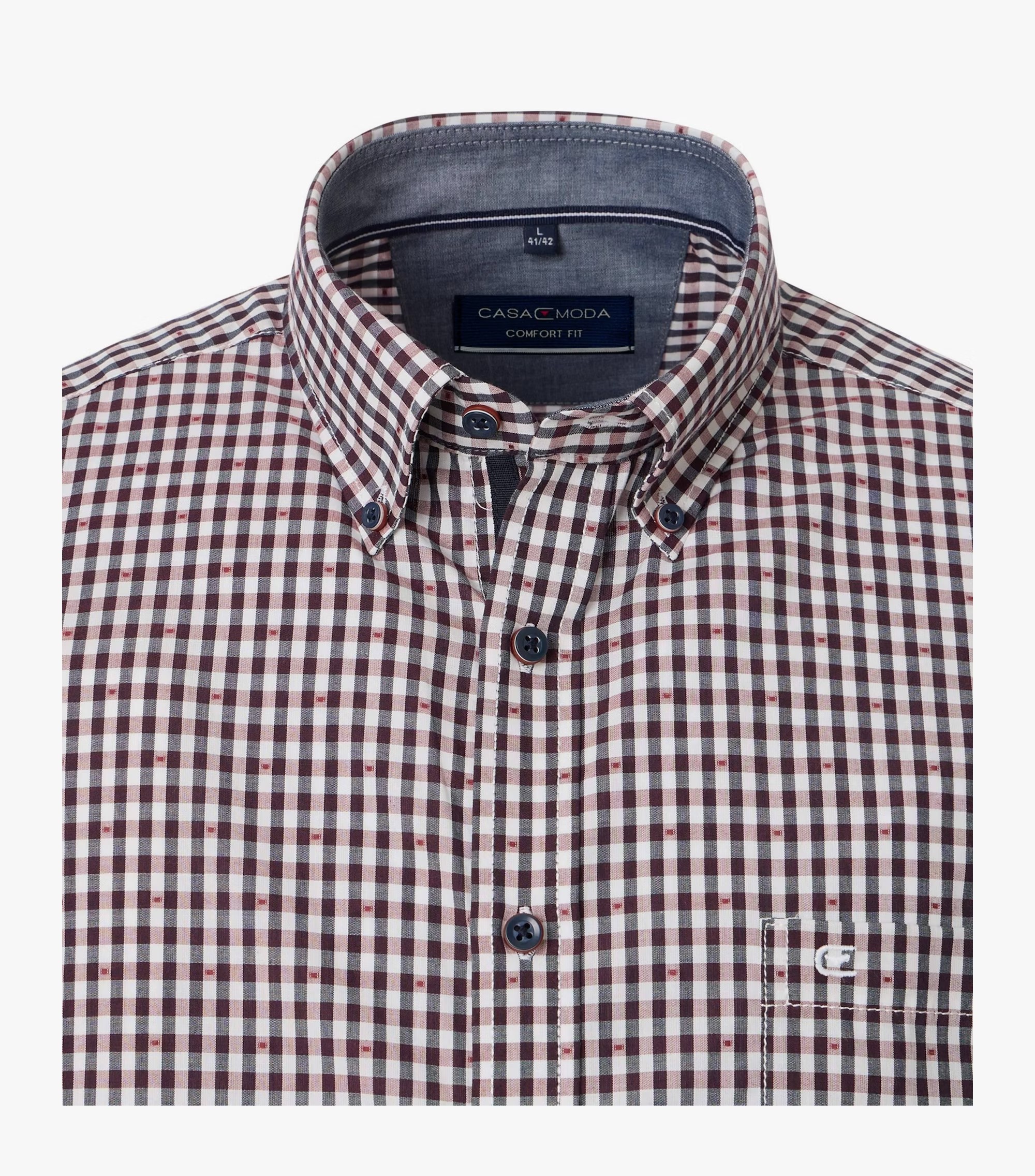 Сорочка в бордовую клетку casual fit немецкого бренда CASAMODA (Касамода) имеет модный принт и идеально подходит для современного мужчины. Эта повседневная сорочка имеет немного приталенный силуэт, хорошо садится и обеспечивает свободу движения. Хорошо комбинируется с классическими брюками или брюками-чинос.