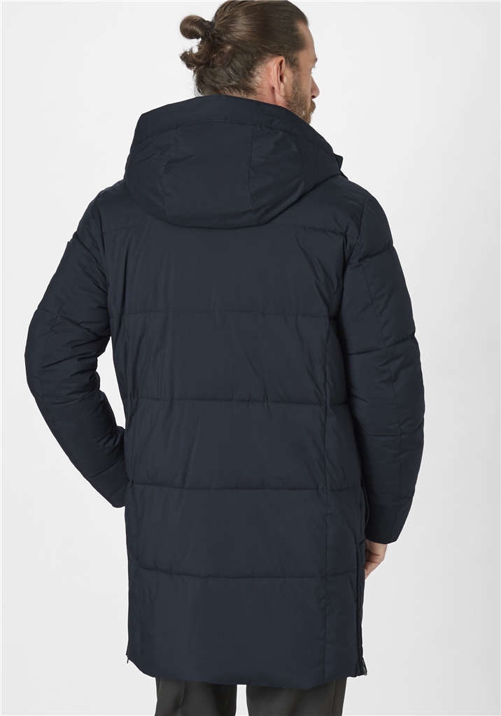 Стильное стеганое мужское пальто Aquarius немецкого бренда S4Jackets, удлиненное с водоотталкивающей пропиткой. Эта функциональная куртка с двумя видами карманов, которые обеспечивают множество мест для хранения важных мелочей, с удобным отстегивающимся капюшоном, отделанным изнутри мягкой приятной на ощупь тканью, с высоким воротником-стойкой, который защитит от холода и ветра и дополнительно отделан светоотражающей тесьмой. Куртка внутри отделана контрастной тесьмой и тканью яркого цвета, два внутренних кармана.