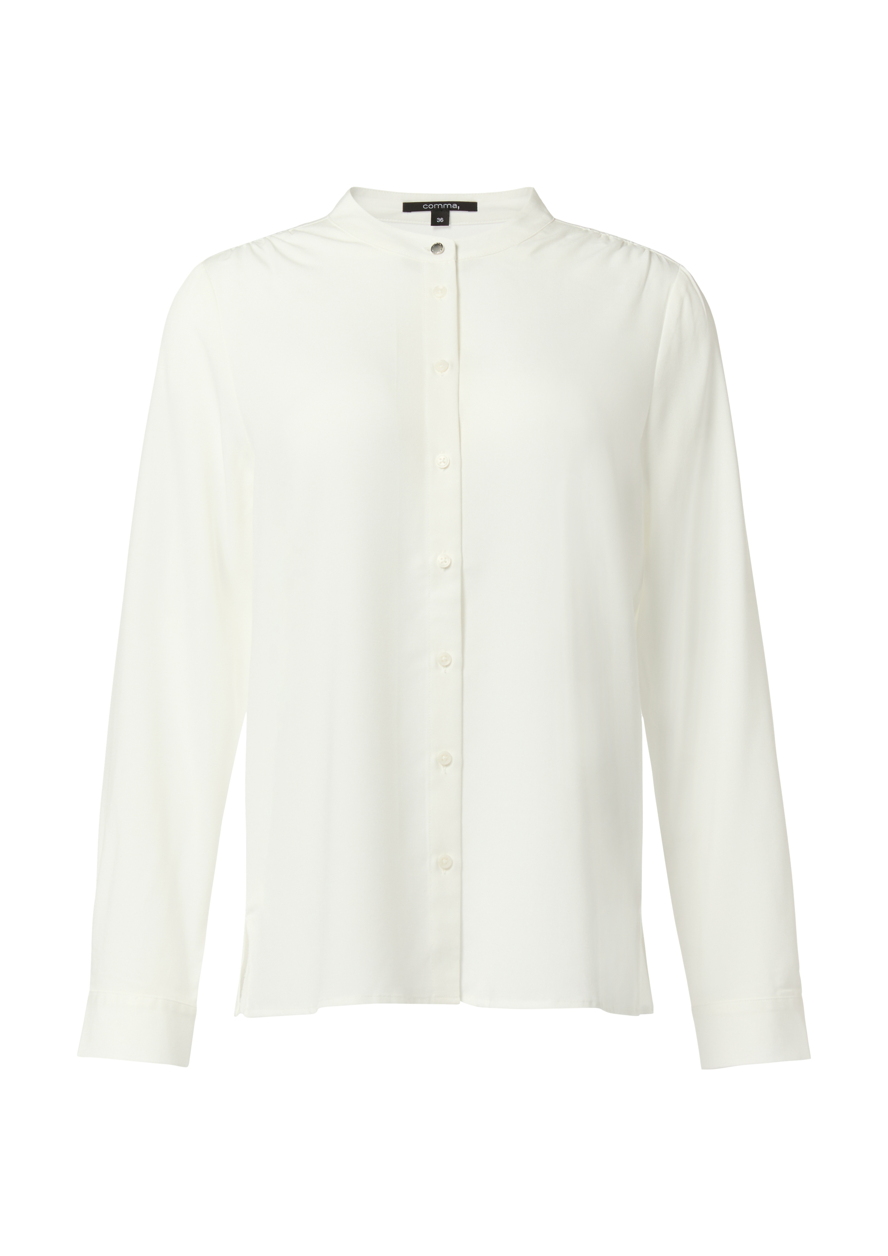 Блуза из вискозы с длинным рукавом немецкого бренда Comma (Комма). Легкая, тонкая блуза на пуговицах - незаменимая вещь этого сезона. Прямой крой скроет недостатки фигуры и подчеркнет ее достоинства. Можно заправить и носить с юбкой, можно навыпуск с брюками, надеть под жакет, кардиган или жилет, это модно, стильно и удобно.