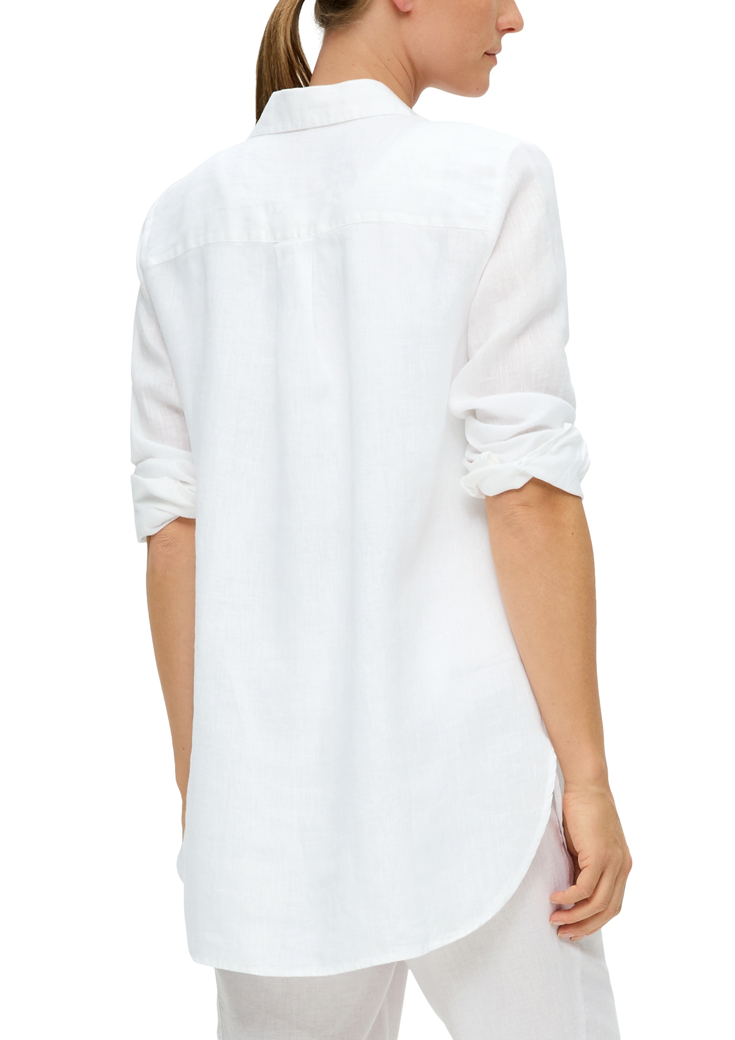 Длинная льняная блуза немецкого бренда S.Oliver. Льняная женская рубашка отлично гармонирует с джинсовыми и льняными шортами, карго и юбками, брюками. Так что присматриваемся к удлиненным моделям, они визуально корректируют фигуру. Так же эту рубашку вы сможете носить и на выпуск, и заправленной, и в роли накидки на топ.
