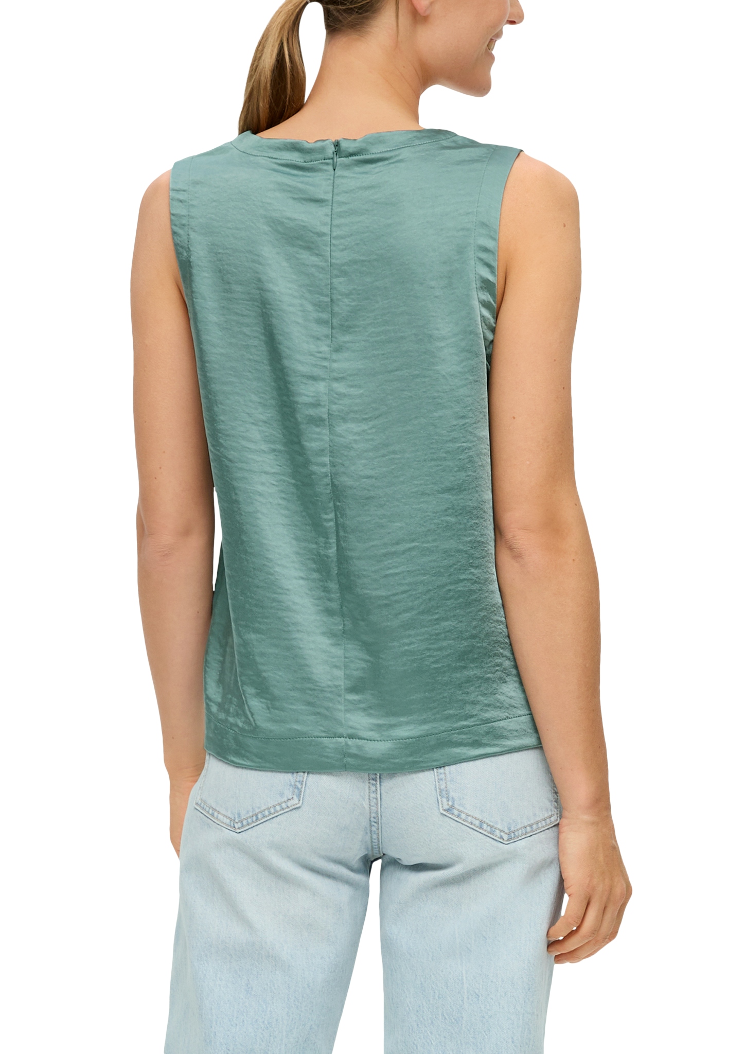 Блуза-топ без рукава с оптикой сатина немецкого бренда S.Oliver. Блуза женская без рукава в виде топа- это стильная женственная модель придаст вашему образу неотразимый вид, отлично будет сочетаться с любым видом одежды. Подойдет для похода на работу так и для повседневной носки.