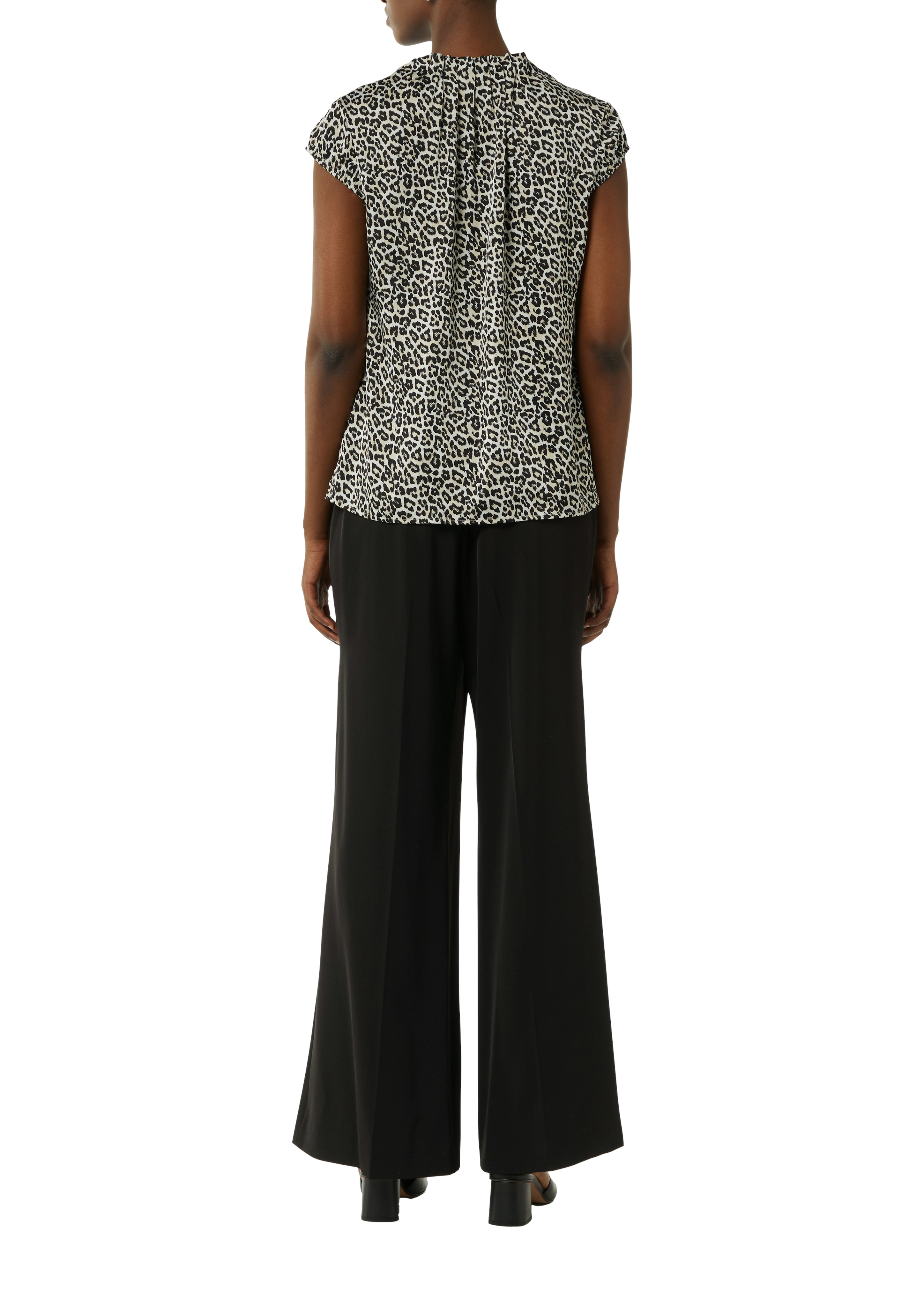 Блуза с коротким рукавом немецкого бренда Comma (Комма). Легкая женская блузка с пестрым леопардовым принтом удачно дополнит ваши стильные образы для офиса и на каждый день. Леопардовый принт гармонирует с ахроматическими цветами, такими как черный, белый, , бежевый и серый. Эти оттенки помогают уравновесить яркость леопардового принта и создают более сдержанный и элегантный образ.