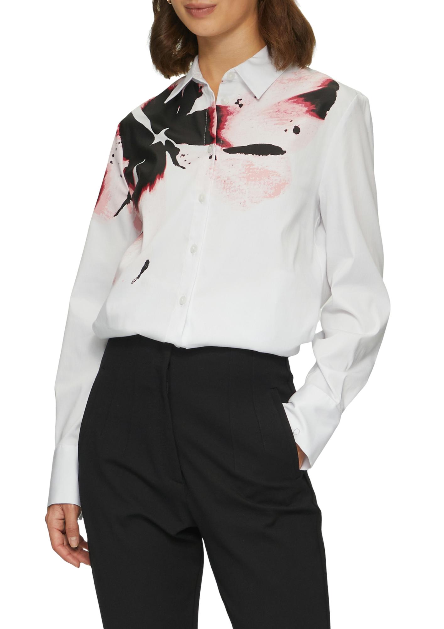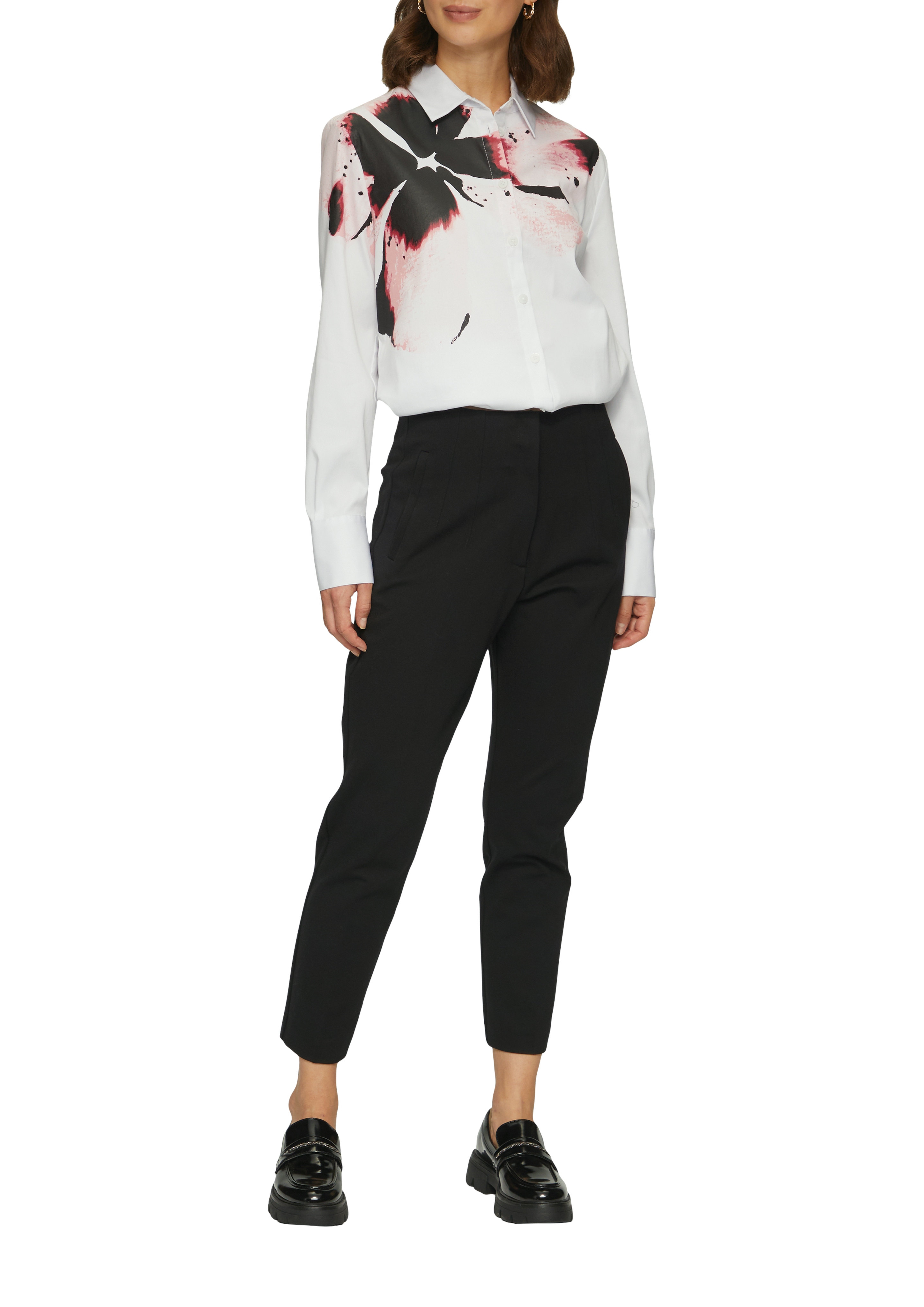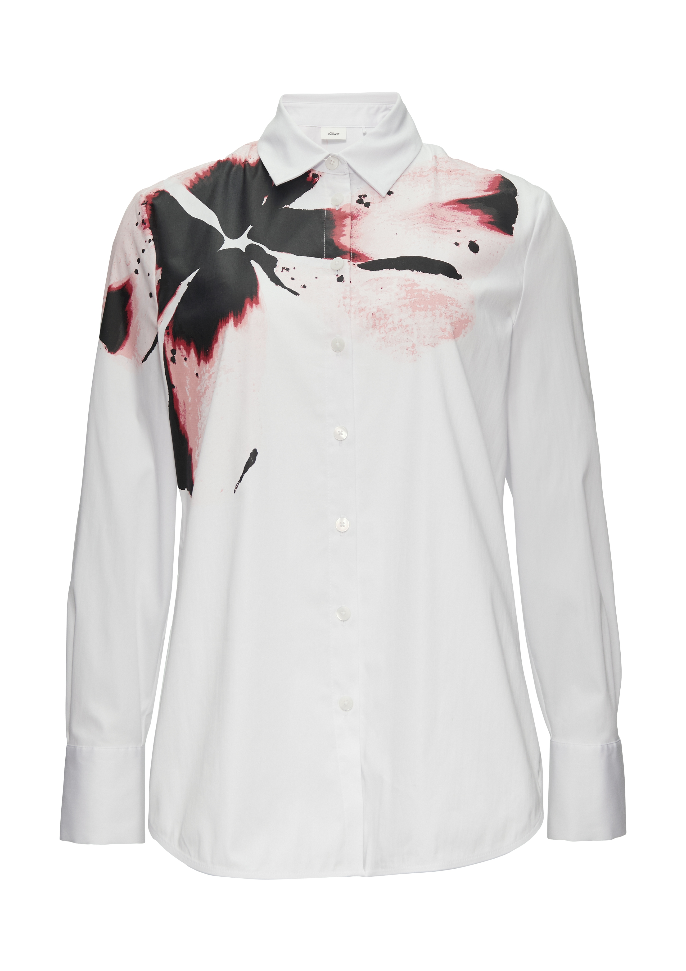 Белая блуза из хлопка с акцентным цветком немецкого бренда S.Oliver (С.Оливер). Цветочный принт хорошо дополняет весенние образы. Он может присутствовать не толко на платьях, но так же на блузках и рубашках. При этом дизайнеры предлагают носить как мелкий цветок, так и крупные аппликации. Если вы хотите создать романтичный образ, обратите внимание на модные модели блузок, где цветы присутствуют в виде акцентов. Они могут быть нанесены на рукава, плечи, карманы. Хорошо смотрятся крупные узоры, в которых сочетается несколько нежных оттенков.