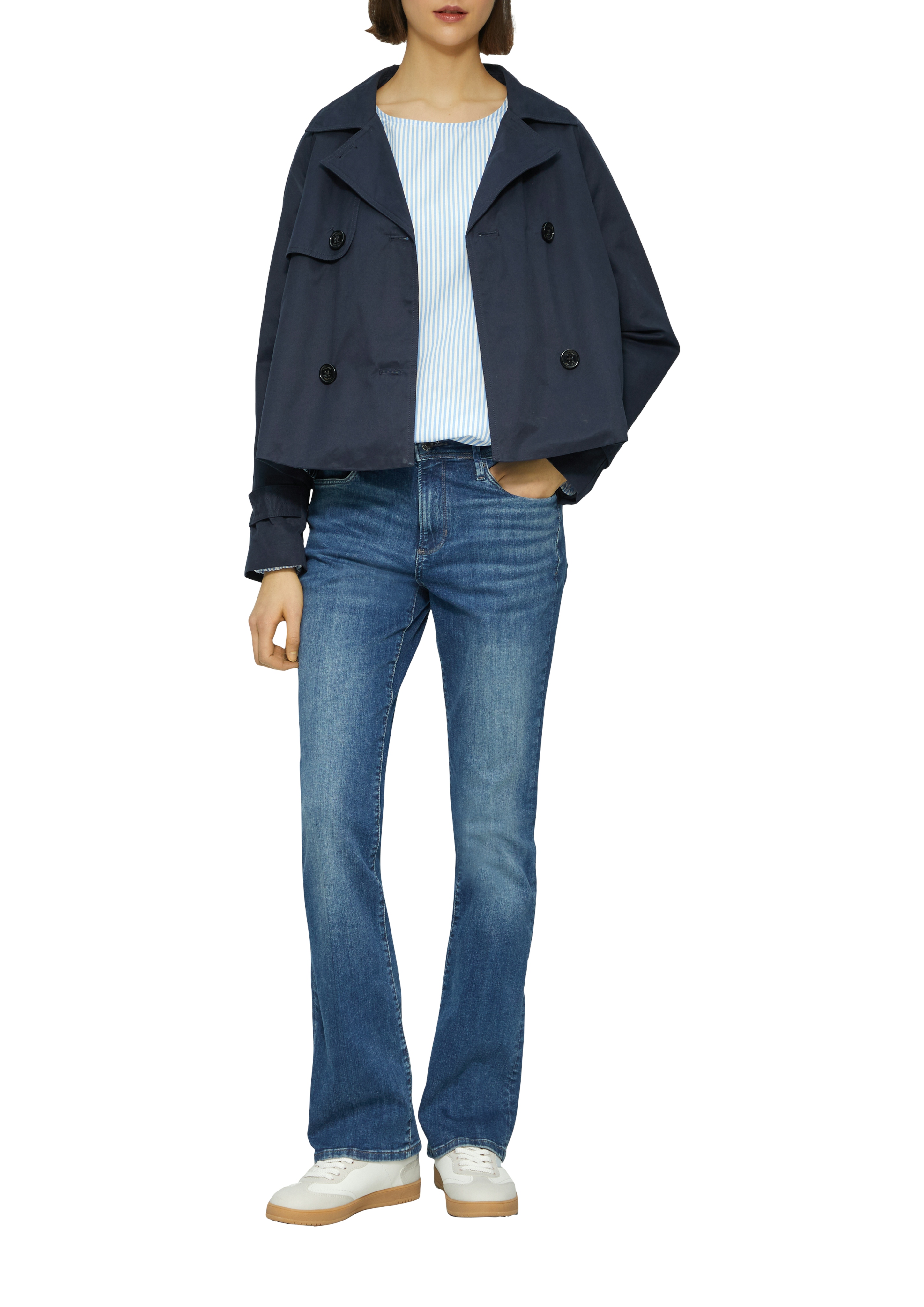 Блуза с низом на резинке немецкого бренда S.Oliver (С.Оливер). Легкая голубая полоса хорошо дополняет весенние образы. Полоска в тренде! Она может присутствовать не только на блузках и рубашках, но так же на платьях и брюках. При этом дизайнеры предлагают носить как тонкую полосу, так и крупную, продольную и поперечную. Эта блуза выполнена из хлопка, укороченная модель, спущенное плечо и широкая пройма обеспечивают комфортную посадку и скрывают недостатки фигуры. Легкая и воздушная вещь станет любимой одеждой женщин. Эффект бабочки, романтический и загадочный образ, женственность - все это наша блуза