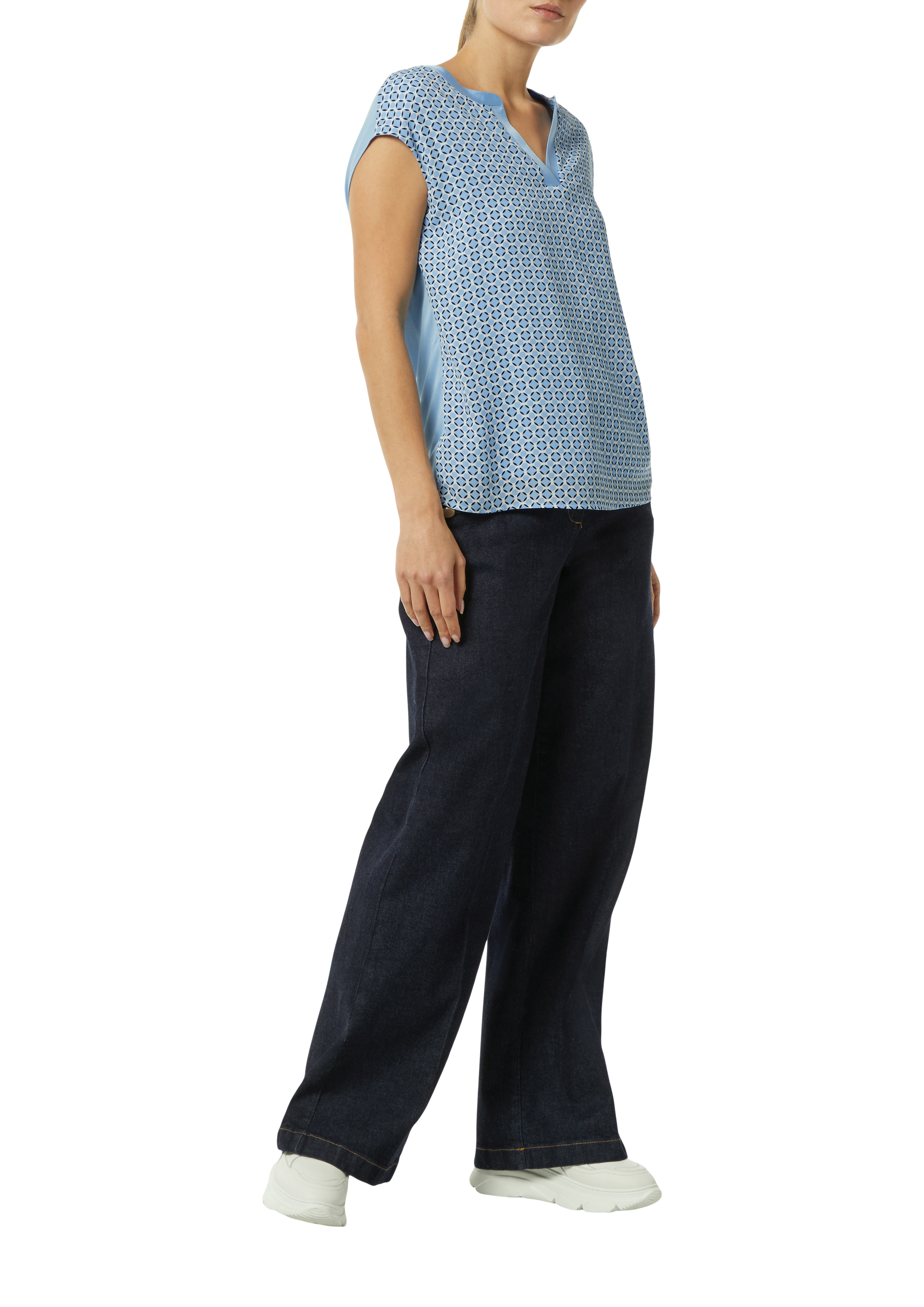 Блуза-топ из вискозы немецкого бренда Comma (Комма). Такой топ носят с брюками кардиганами и пиджаками, стандартный офисный вариант, или как самостоятельный элемент гардероба с юбкой для более женственного образа