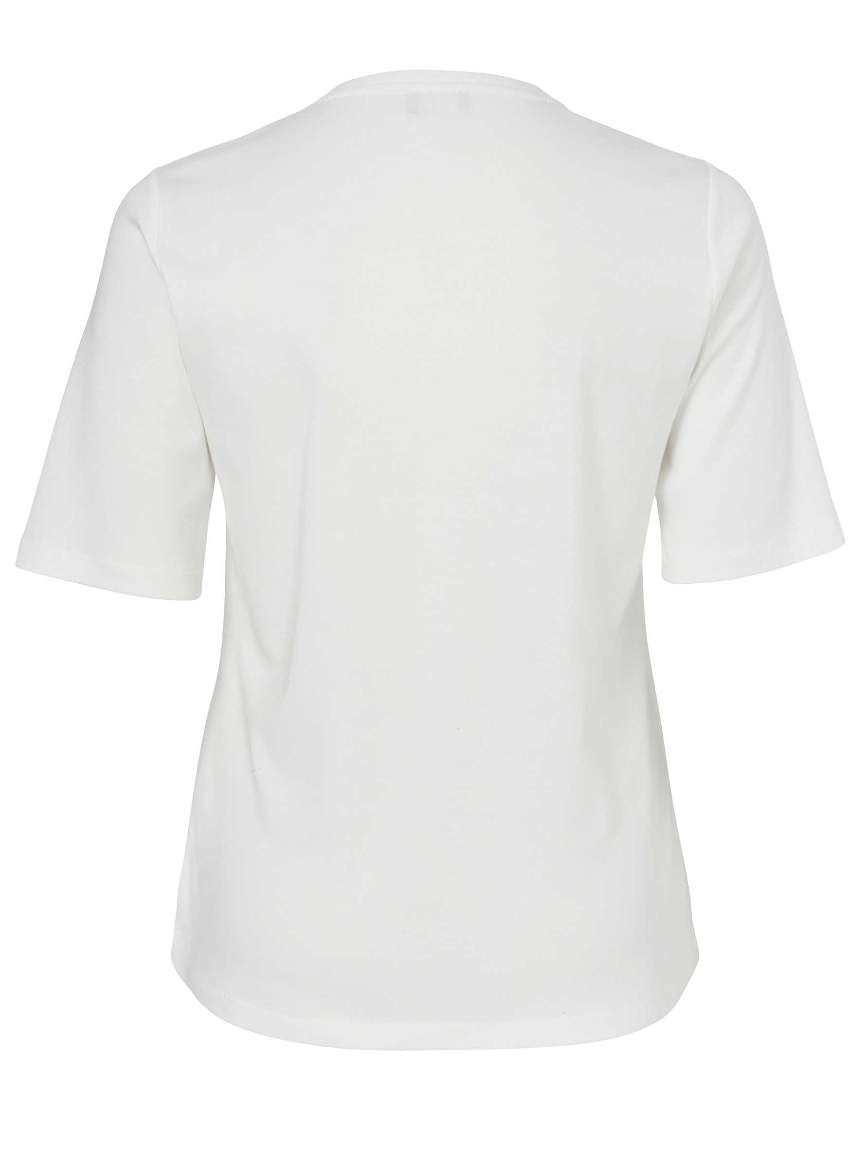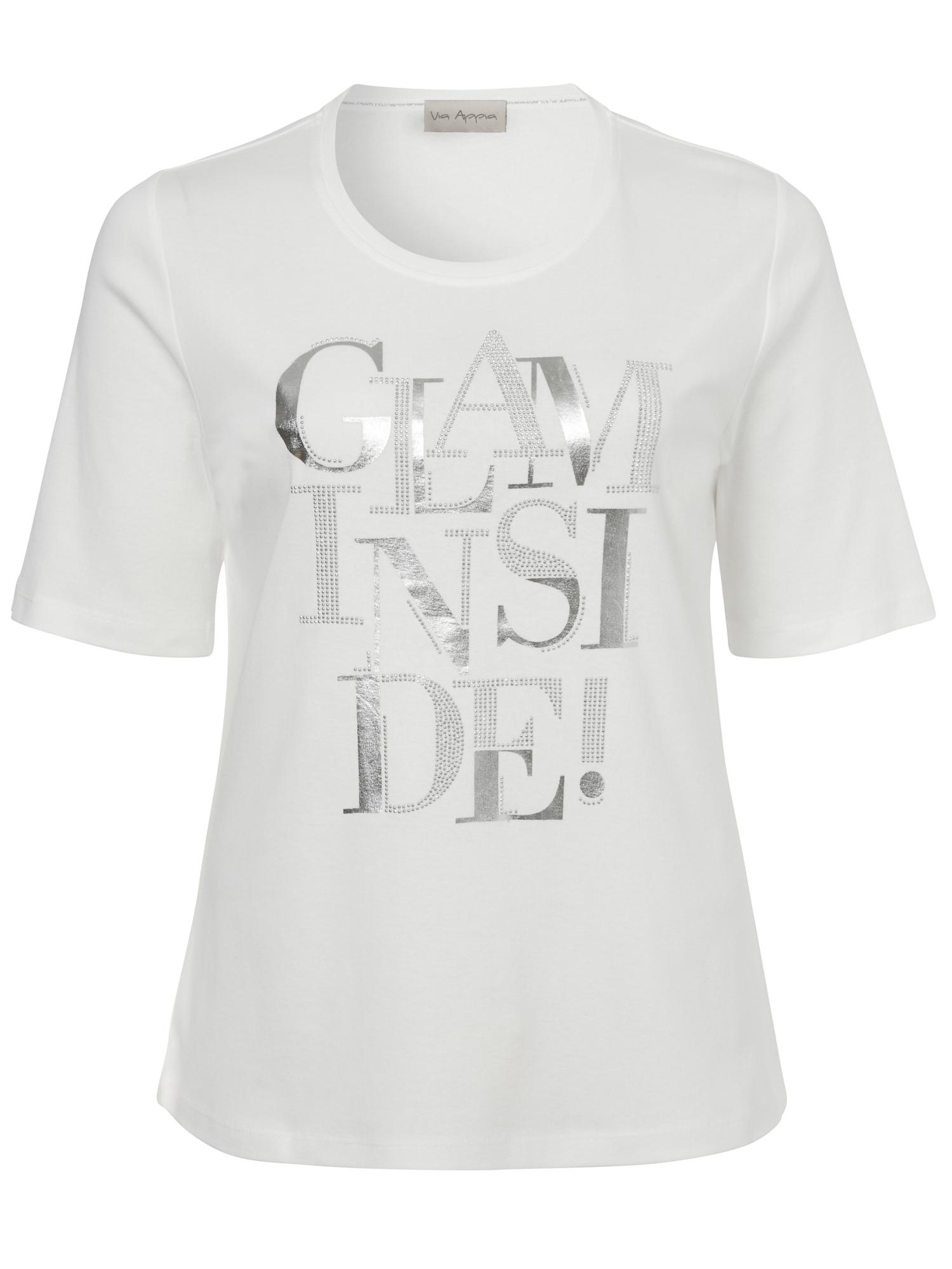 Белая женская футболка с буквенным принтом от немецкого бренда Via Appia (Виа Аппия), с круглым вырезом и однотонной спинкой, выполнена из тонкого летнего трикотажа, удобна и комфортна в носке.