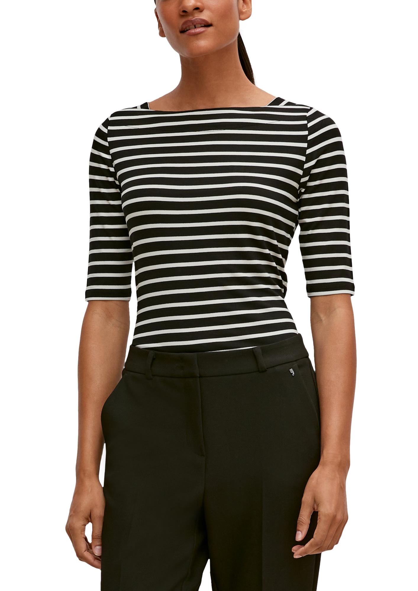 Женская полосатая футболка с рукавами средней длины немецкого бренда Comma (Комма) - это идеальный выбор для модного наряда. Очень мягкая и приятная на ощупь ткань из вискозного волокна, при этом достаточно эластичная. Можно сочетать с пиджаками и жакетами, брюками и джинсами, так и с юбкой.