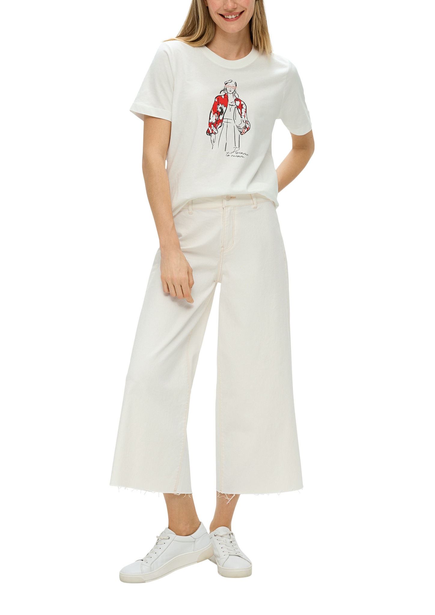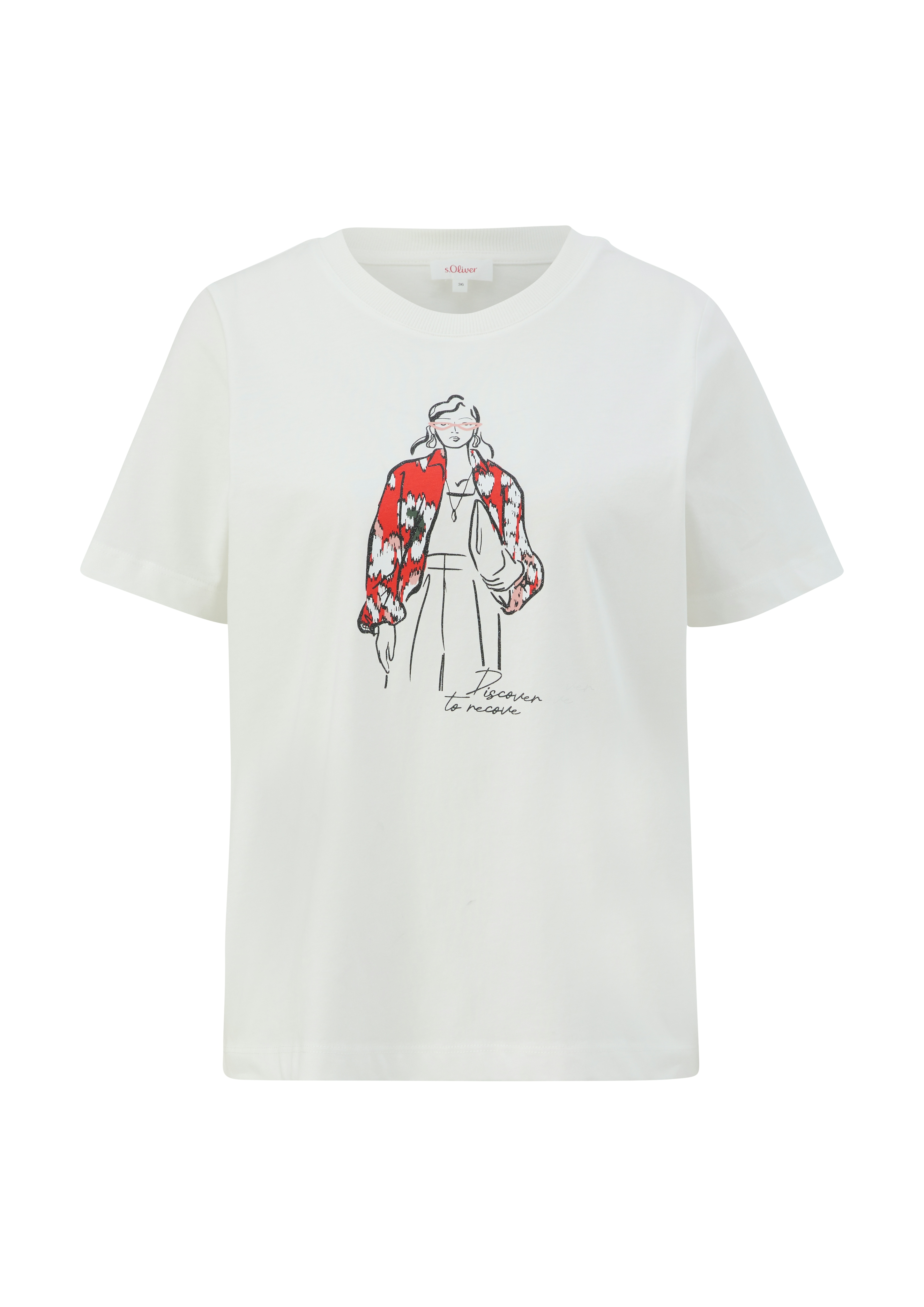 Футболка со стильным принтом немецкого бренда S.Oliver. Многие уверены, что футболки с принтами - это одноразовая вещь по случаю. На самом деле, правильно выбранный принт может стать частью стильного гардероба в любом возрасте. Все зависит от рисунка и сочетания с другими предметами одежды. Выбирайте футболку на размер больше - она смотрится стильно и создаст тот самый вид " свободной небрежности ". Они отлично смотрятся как с джинсами, так и укороченными брюками, шортами, короткими или длинными юбками. Обувь при этом может быть универсальной - кроссовки, кеды, лоферы или туфли на шпильке - в зависимости от образа, котопый вы хотите создать!
