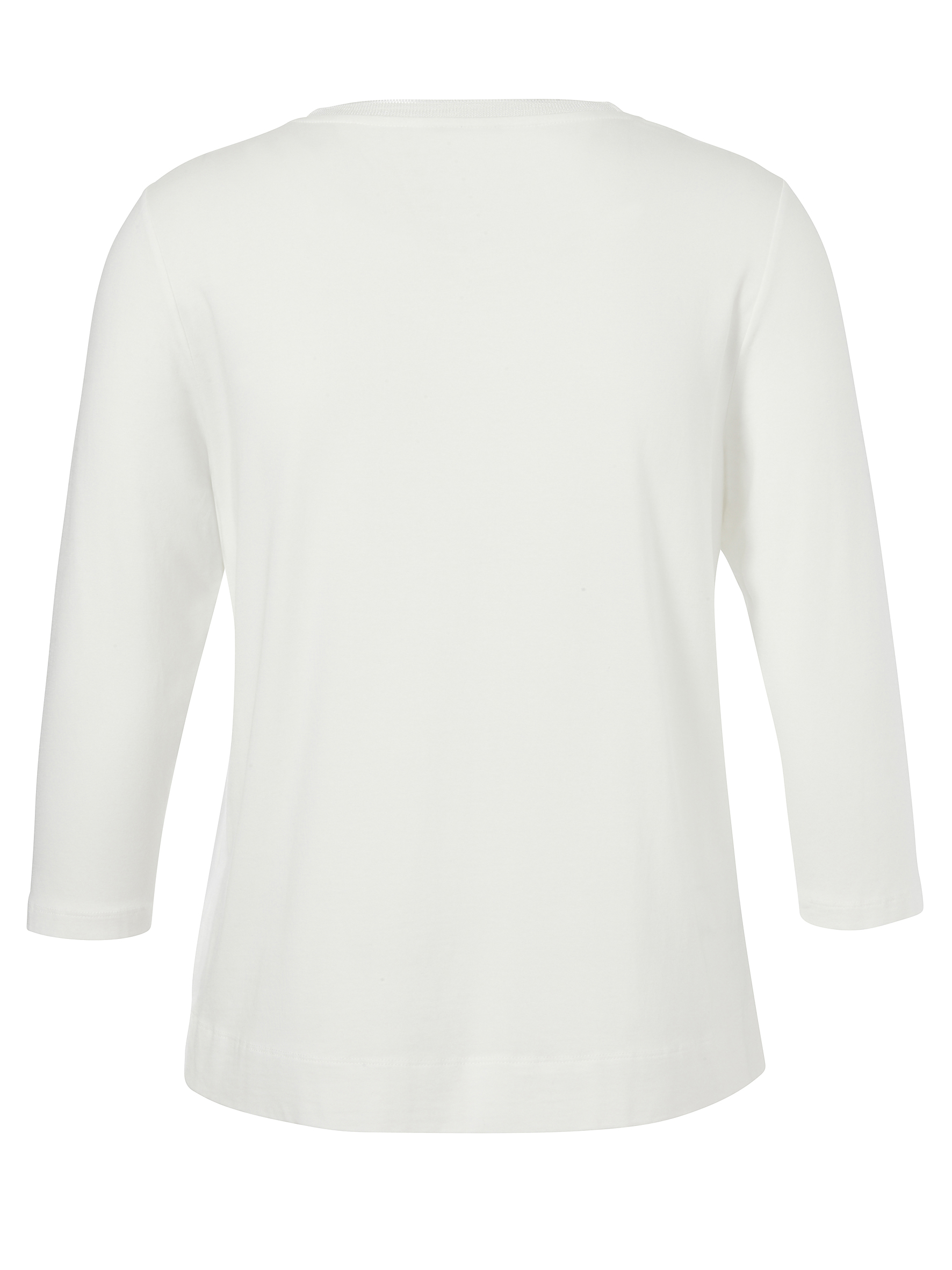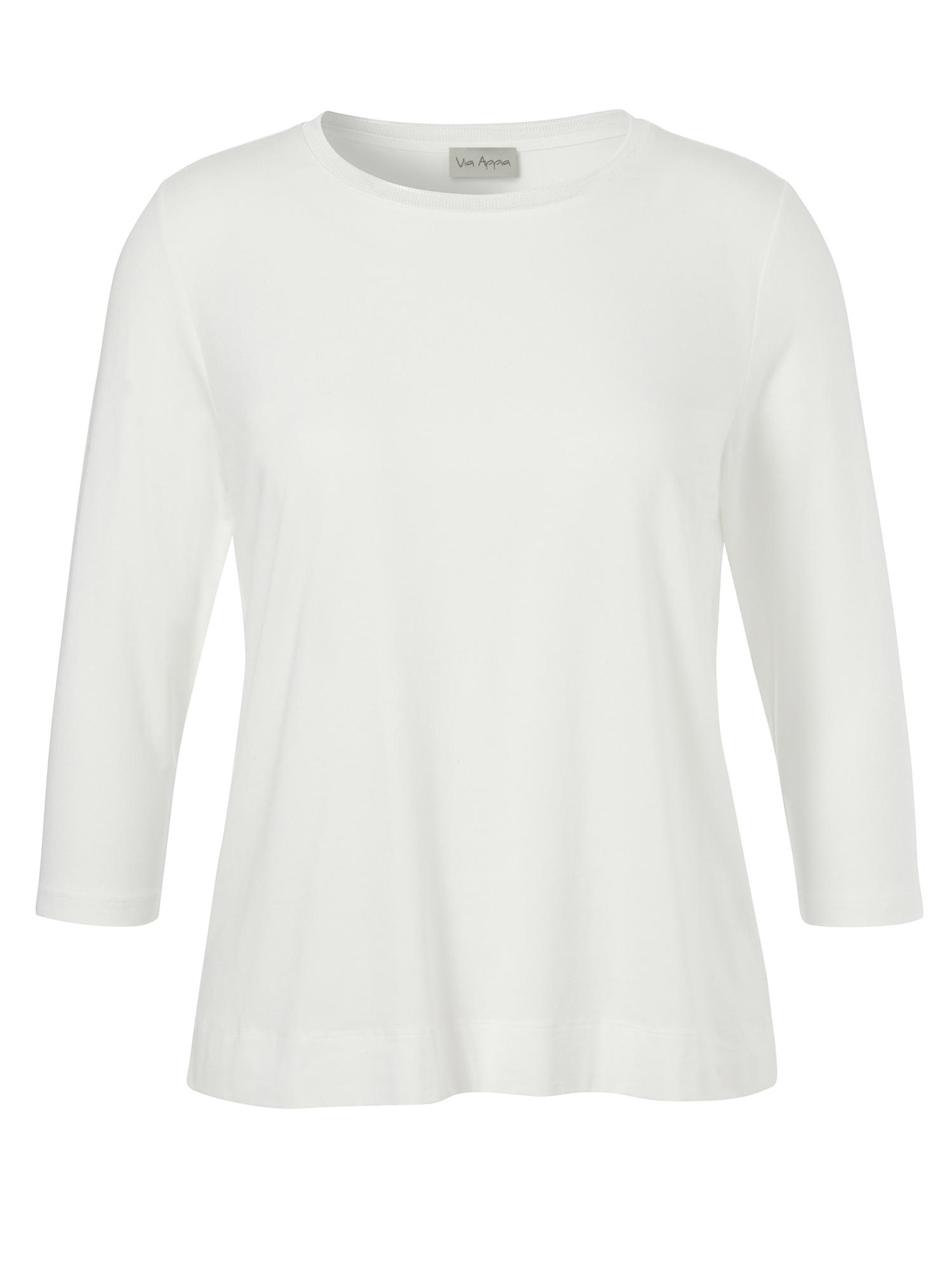 Белая женская футболка с рукавом 3/4 от немецкого бренда Via Appia. Базовая белая майка необходима в любом гардеробе, подойдет и к джинсам, и к брюкам, а также под жакет, пиджак, жилет, рубашку. Хлопок и вискоза в составе делают эту футболку мягкой и приятной тактильно, комфортной в носке и стирке.