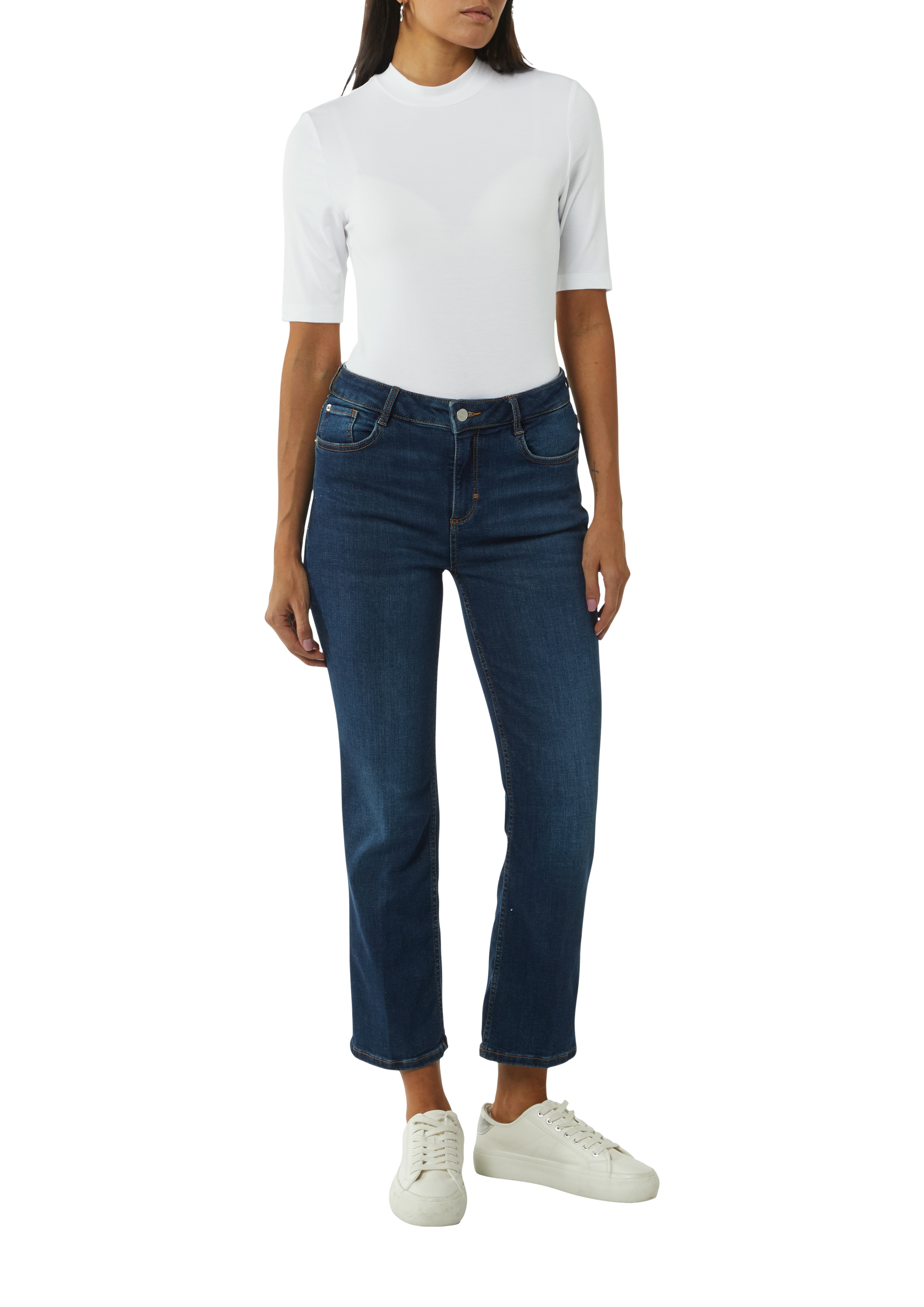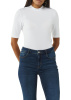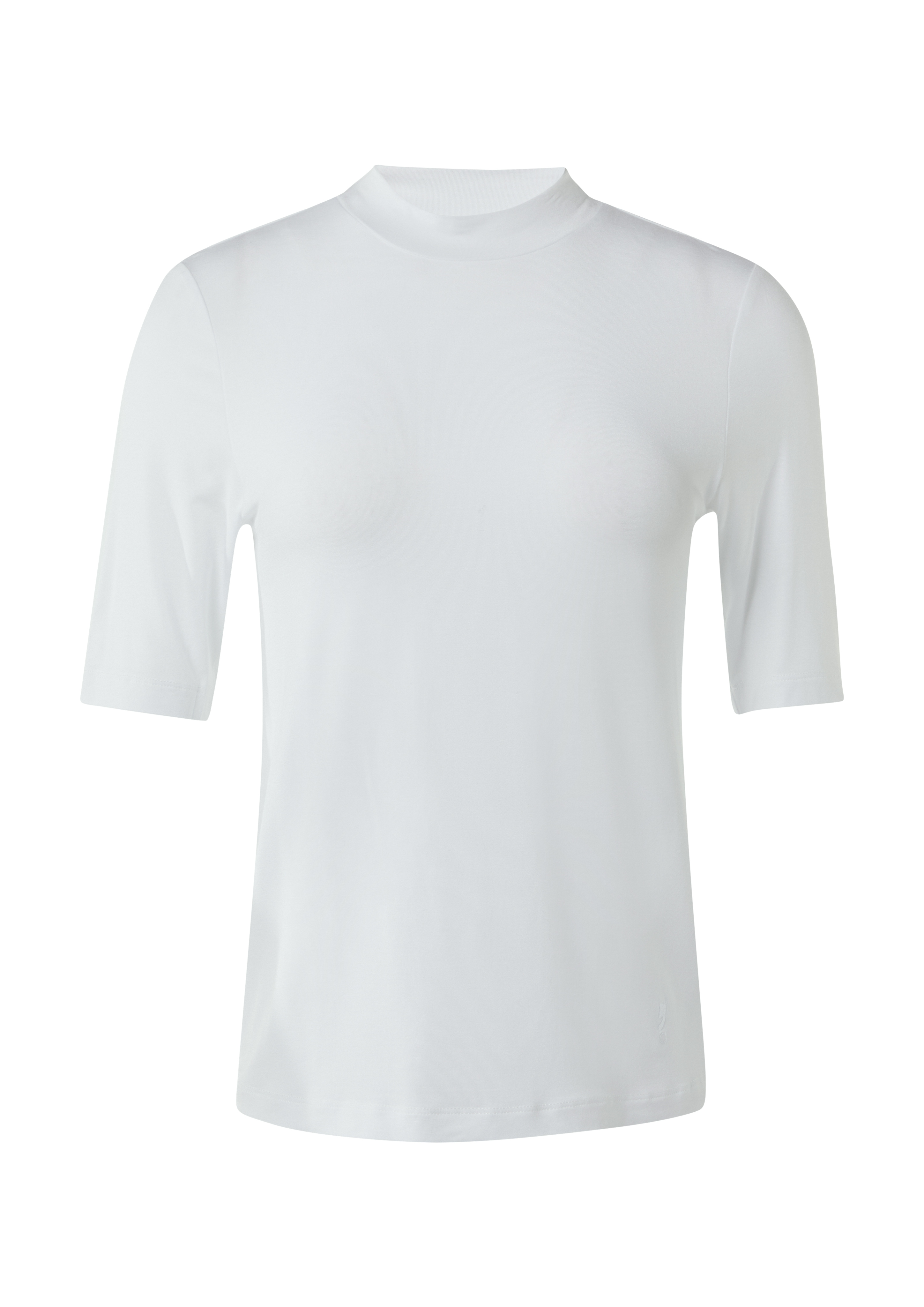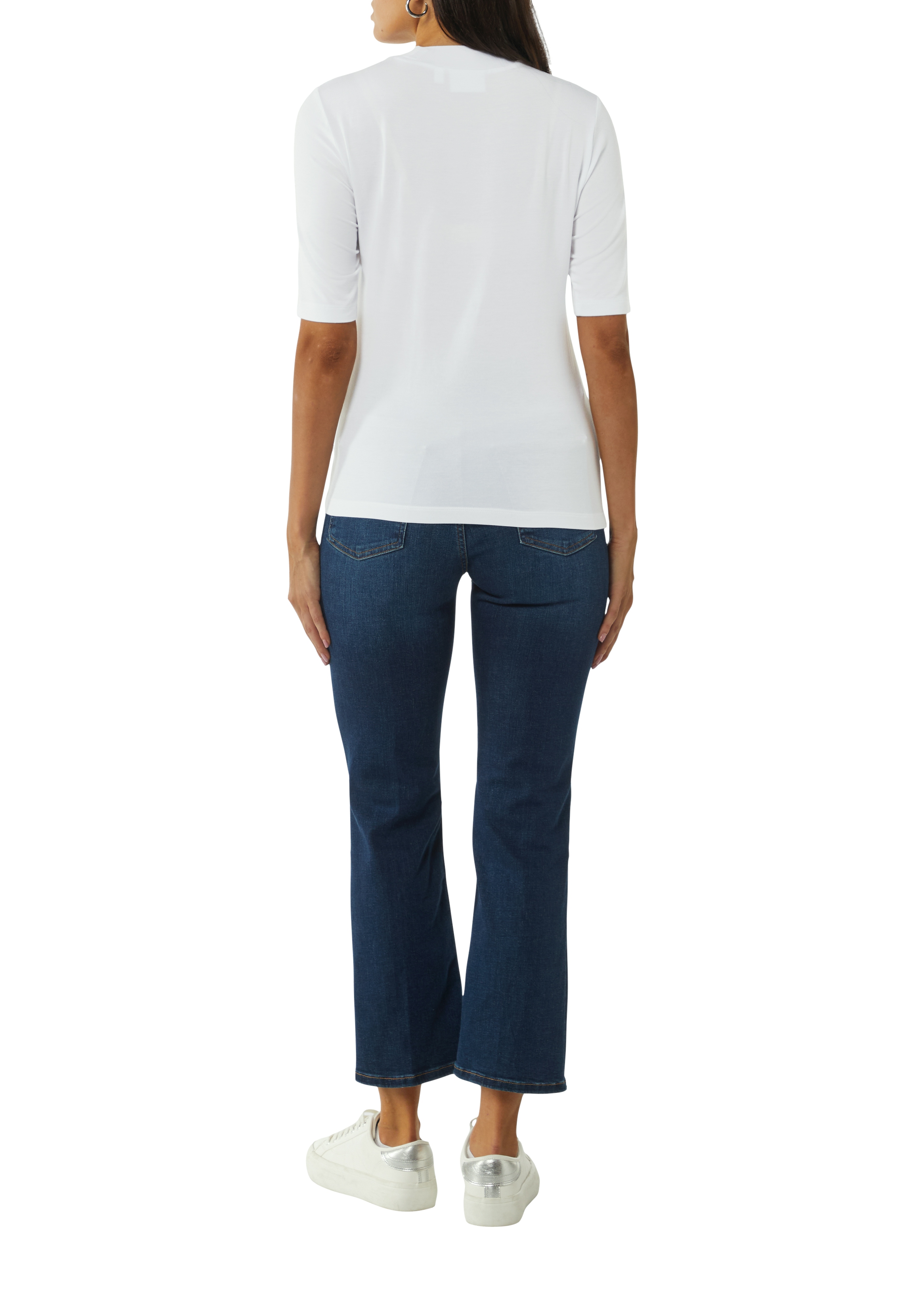 Белая футболка с коротким рукавом и горлом немецкого бренда Comma (Комма). В современном женском гардеробе белая футболка в разных своих разновидностях присутствует очень активно, и от имиджа спортивной одежды давно избавлена. Хорошая футболка уместна и в casual сочетаниях, и на красной дорожке, и в своем чистом виде, как вещь в себе, не нуждающаяся ни в каких других стилистических подборках. Сколько белых футболок нужно женщине для полного счастья? иметь в своем распоряжении нужно как минимум несколько. Тем более что разные футболки будут служить базой в разных сочетаниях.