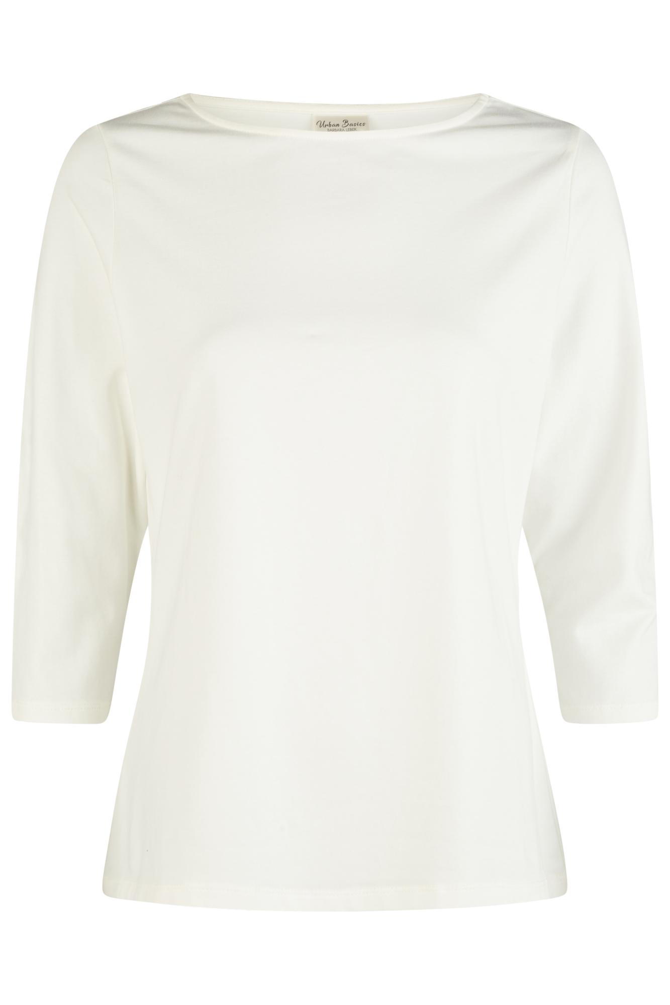 Белая женская футболка с рукавом 3/4 от немецкого бренда Barbara Lebek (Барбара Лебек). Базовая белая майка необходима в любом гардеробе, подойдет и к джинсам, и к брюкам, а также под жакет, пиджак, жилет, рубашку. Хлопок в составе делает эту футболку мягкой и приятной тактильно, комфортной в носке и стирке.