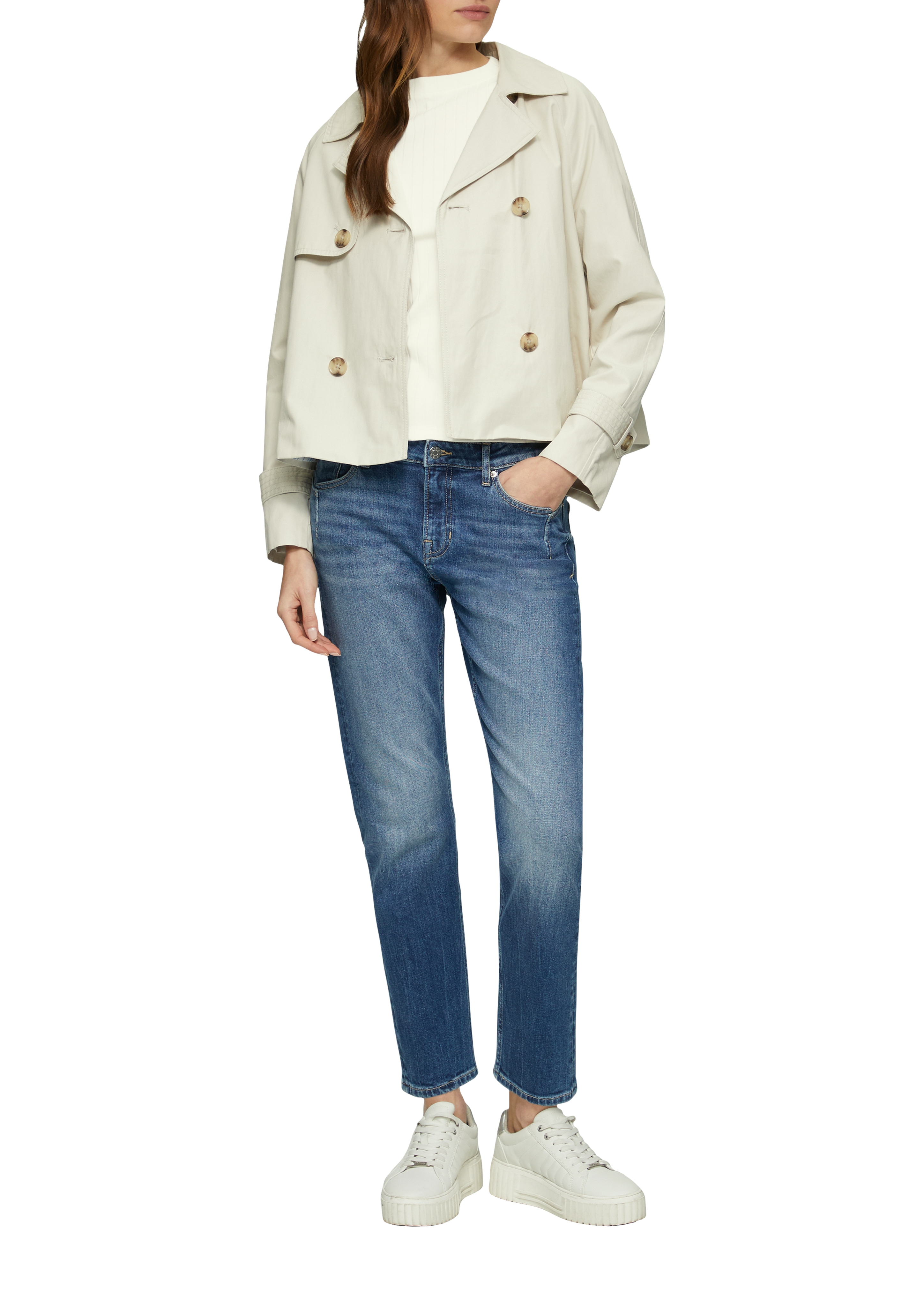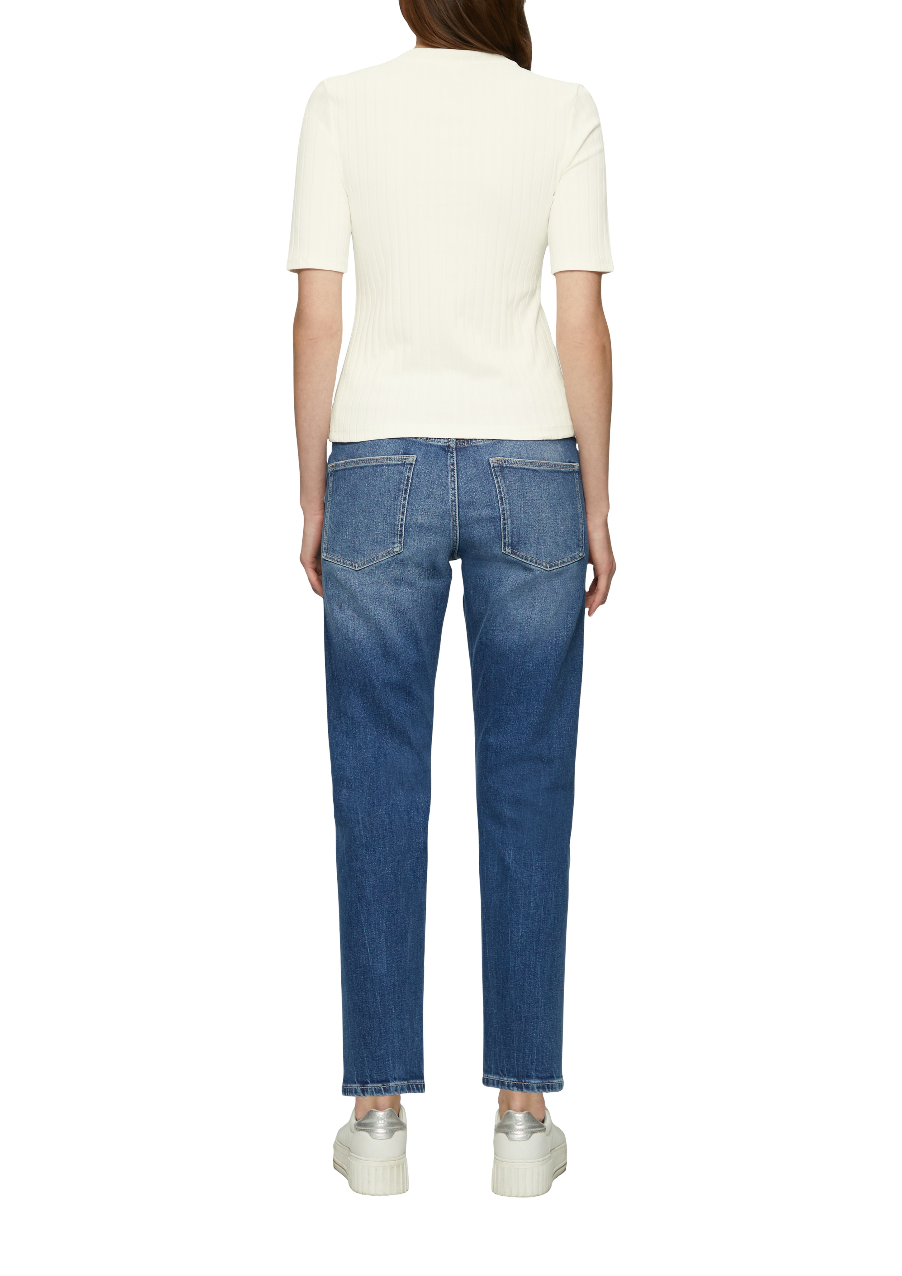 Приталенная футболка с ребристой текстурой от немецкого бренда S.Oliver (С.Оливер). Базовая белая майка необходима в любом гардеробе, подойдет и к джинсам, и к брюкам, а также под жакет, пиджак, жилет, рубашку. Хлопок в составе делает эту футболку мягкой и приятной тактильно, комфортной в носке и стирке.