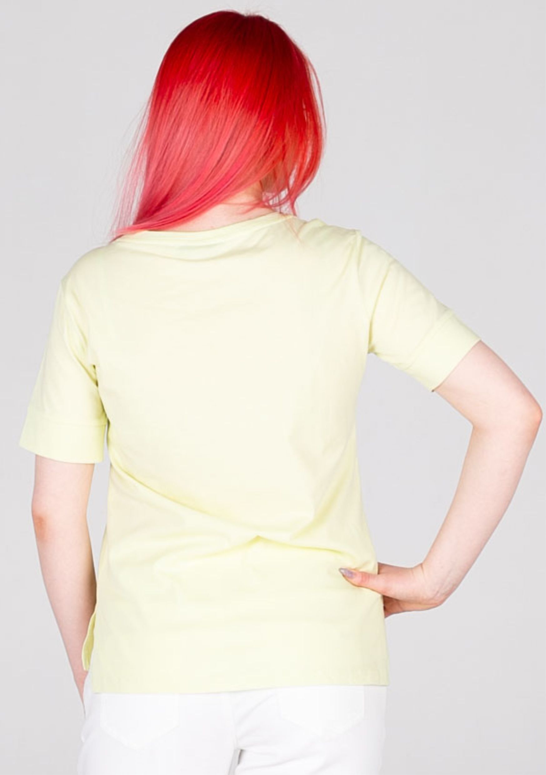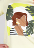 Хлопковая женская футболка от немецкого бренда Comma Ci (Комма) с принтом в виде женского портрета. Светлый лаймовый цвет в сочетании с тропическими мотивами создает летнее настроение. Блестящий акцент на серьге в портрете удлиненная спинка придают изюминку образу.